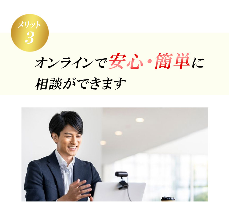 オンラインなので、安心して手軽に相談できます。全国OKで、地方でも大丈夫です。
